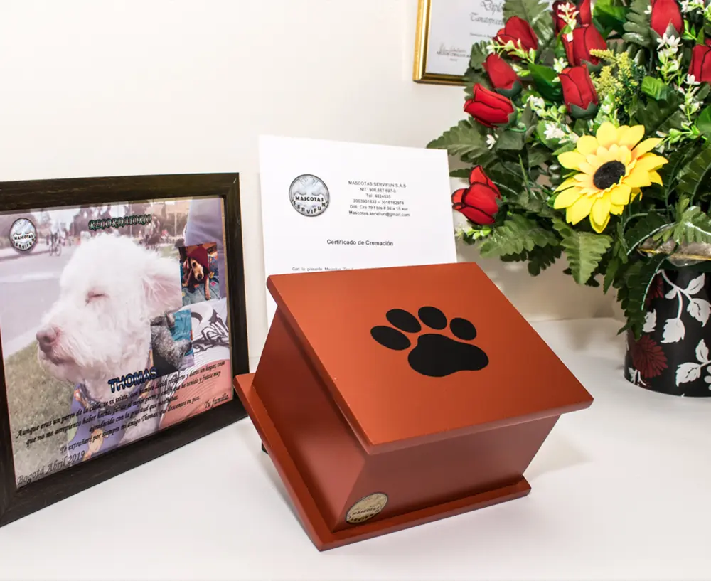 hacia nuestra funeraria para mascotas, se te hará entrega y devolución de cenizas acompañadas de un cofre cenizario, Certificado de cremación y conjunto Foto recordatoria, estas opciones son exclusivas de para las cremaciones individuales de mascotas.